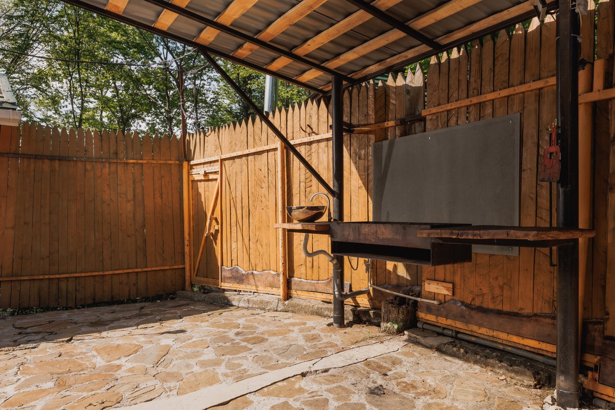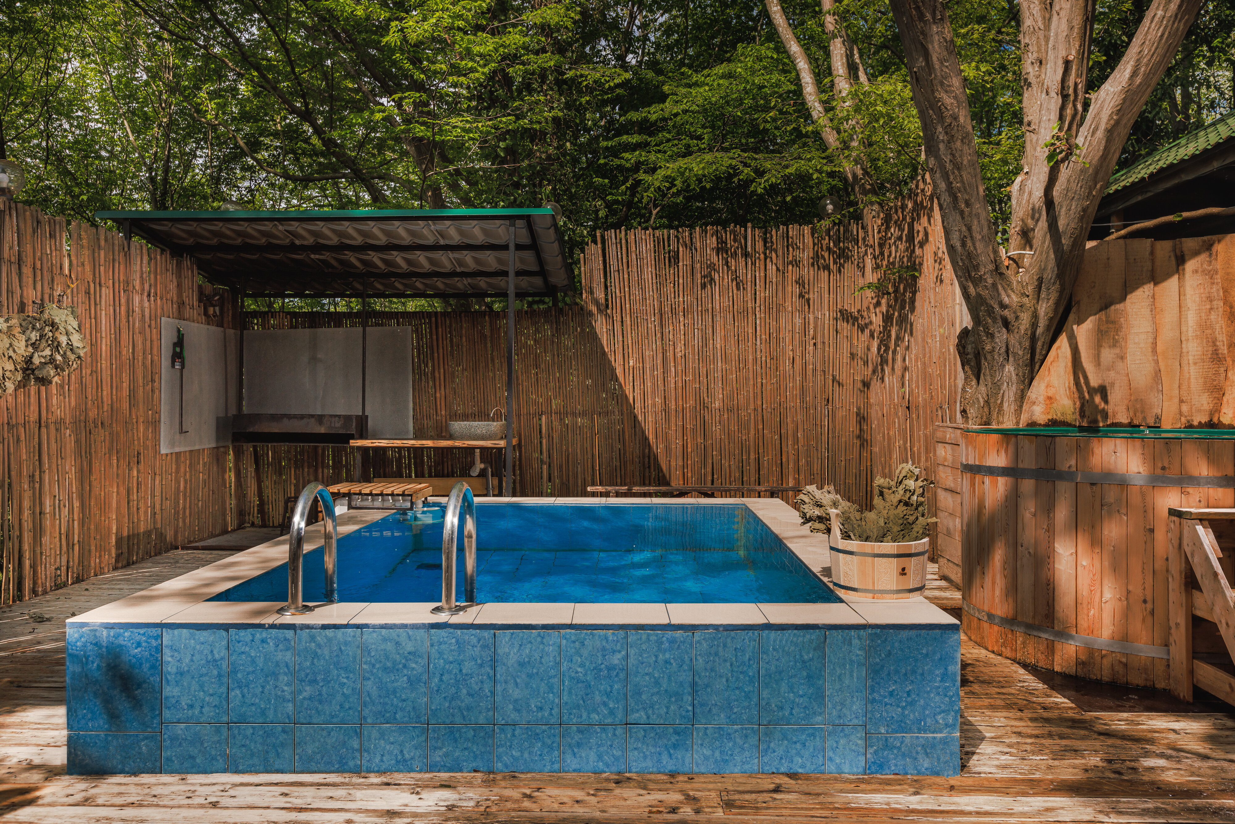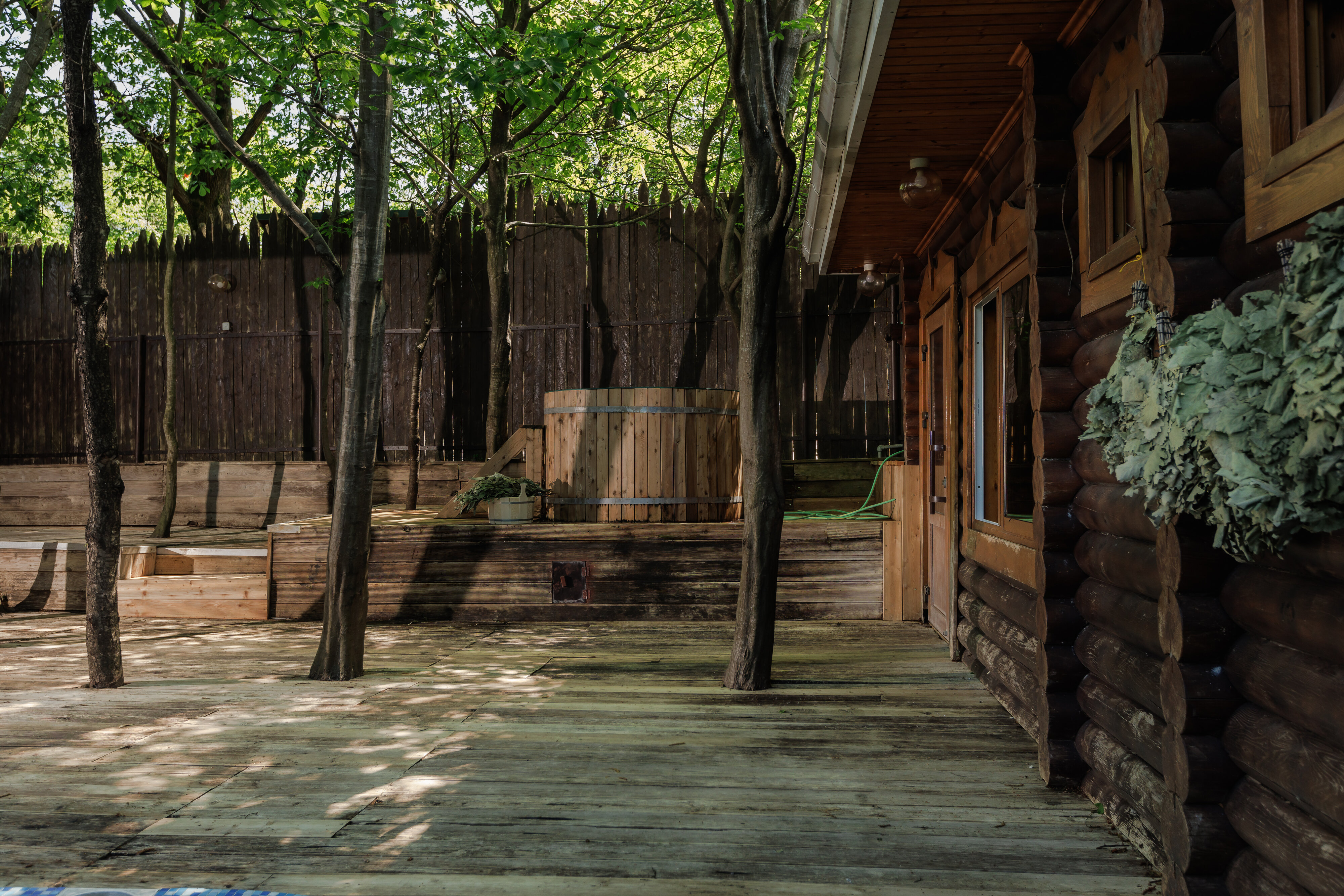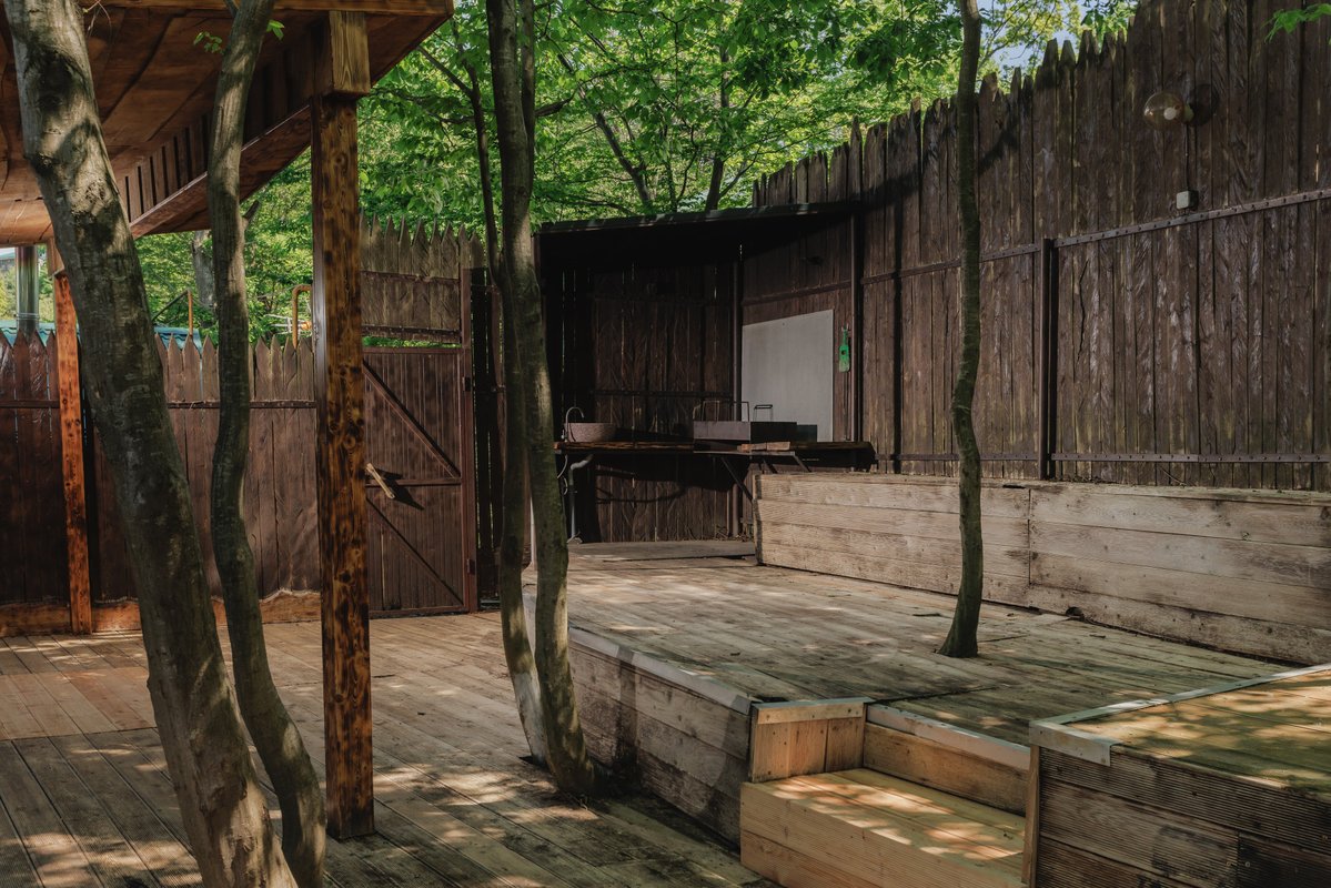 Я много раз здесь бывал, и мне очень нравится баня. Мы часто собираемся здесь компанией, просто посидеть, отдохнуть. Здесь есть мангальная зона, а также купели и чан с тёплой водой. И, что немаловажно, всё это находится рядом с нашим домом.