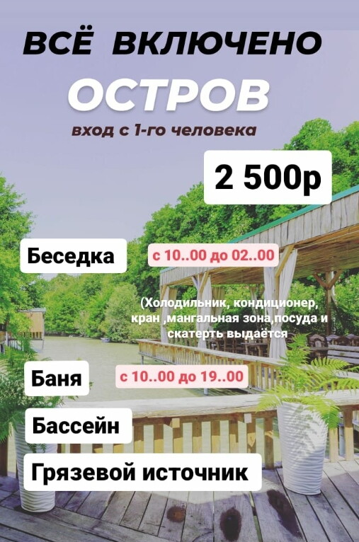 Посещаю это место уже несколько лет - выбираю за комплекс удобств: мангал, столы, всё необходимое в беседках. Приезжаю обычно рано утром, когда ещё нет очередей. Персонал встречает хорошо. Беседки на островке стандартные, но всё необходимое есть.