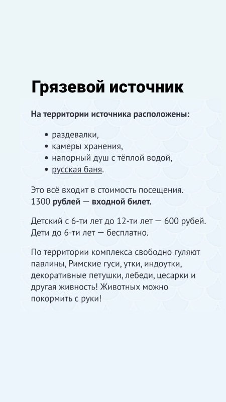 Мне очень нравится атмосфера и уют, гостеприимство и отзывчивость персонала. Я посещаю это место уже седьмой раз с лета, чаще всего приезжаю на рыбалку и пользуюсь причалом. Раньше брал обрывы, а когда всё было включено: грязи, баня, бассейн, и это было здорово. Но в целом всё отлично, персонал всегда проявляет себя с лучшей стороны.