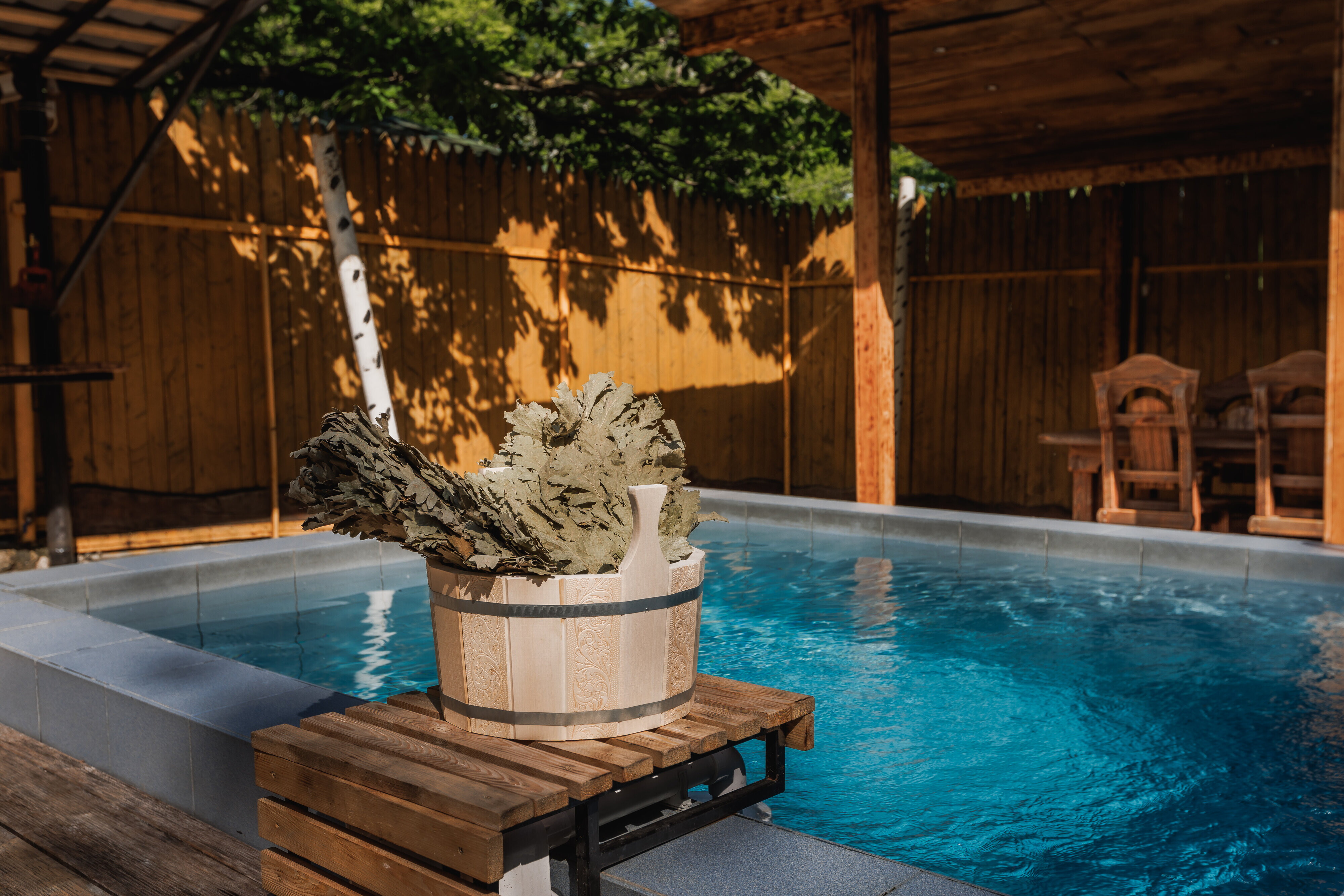 Визит в баню оставил яркие впечатления, во многом благодаря эмоциям моего друга, у которого был день рождения - он постоянный гость и в этот раз остался невероятно доволен. Мне лично понравилась общая атмосфера и уединённость, которая позволила нам отдохнуть отдельно от всех. В нашем распоряжении были парная, душевая, уличный бассейн и столик.